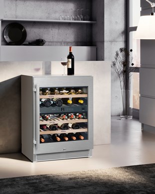 The cabinet maintains consistent temperature control essential for wine preservation. An easily replaceable FreshAir activated charcoal filter removes environmental odours and maintains air quality, whilst the ventilation control allows you to adjust humidity levels as needed. The PowerCooling system ensures rapid temperature stabilisation for newly stored bottles, establishing uniform cooling throughout the cabinet.
